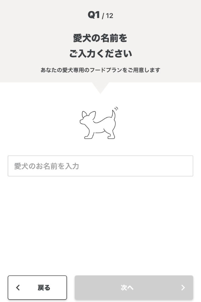 愛犬のフード診断では、全部で12項目の質問に答える必要があります。