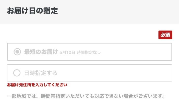 ここでは、「最短のお届け」または「お届け日時を指定」を選びましょう。