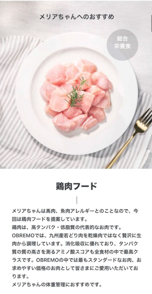 我が家のトイプードル・メリアちゃんには「鶏肉フード」がおすすめと診断されました。