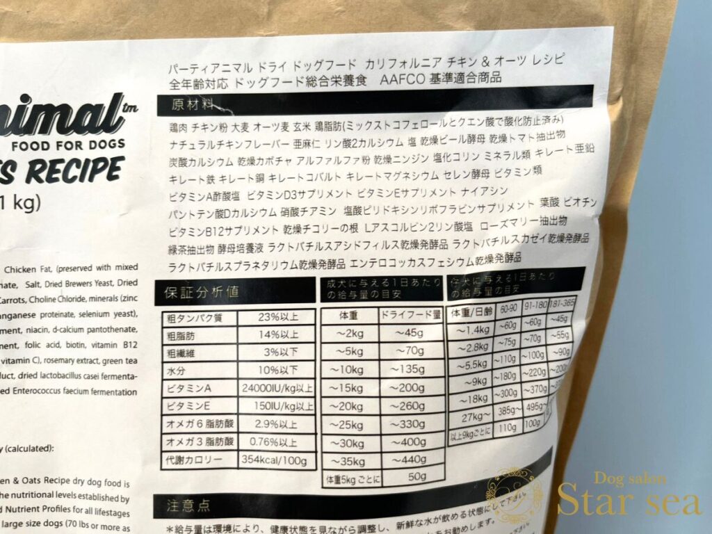 ※今回は「パーティアニマル チキン&オーツ」の表記です。