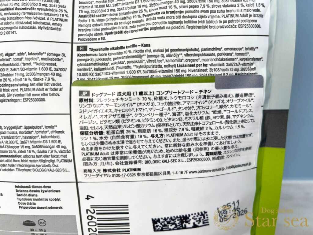 Dog salon Star seaでは、プラチナムドッグフードをAランクと評価しました。
