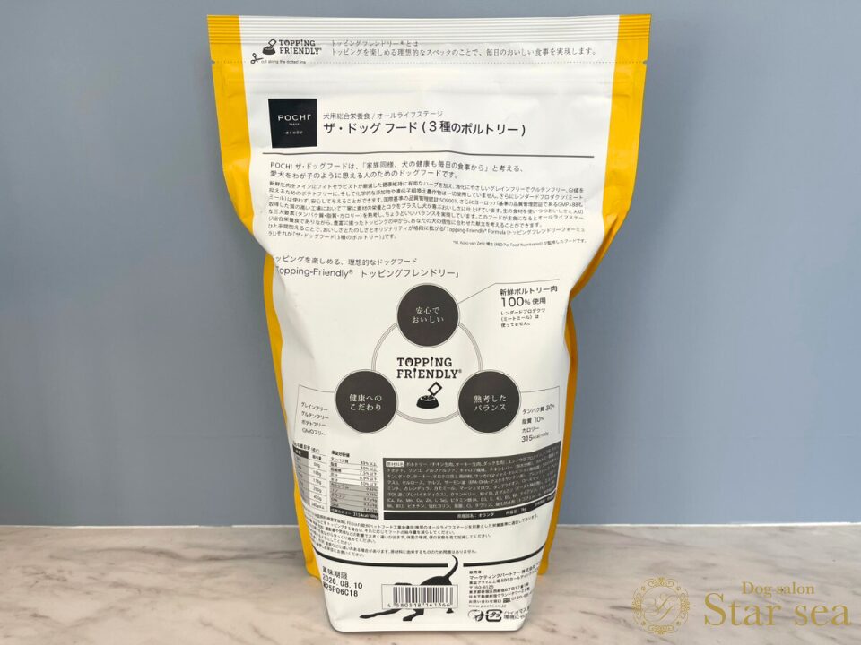 総合栄養食でありながら、トッピングをしても栄養バランスが崩れにくいように設計されており、愛犬家の間でも注目されています。