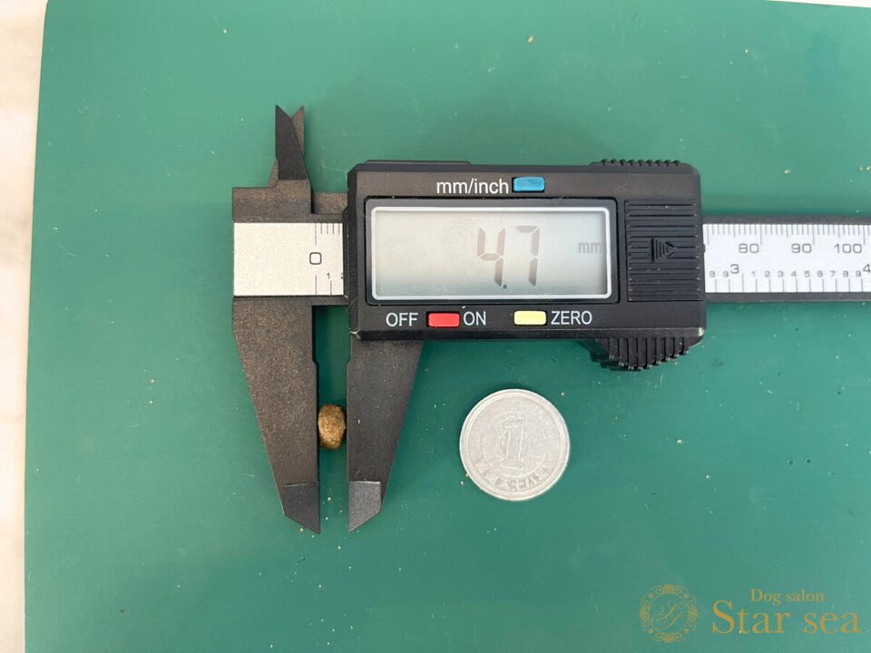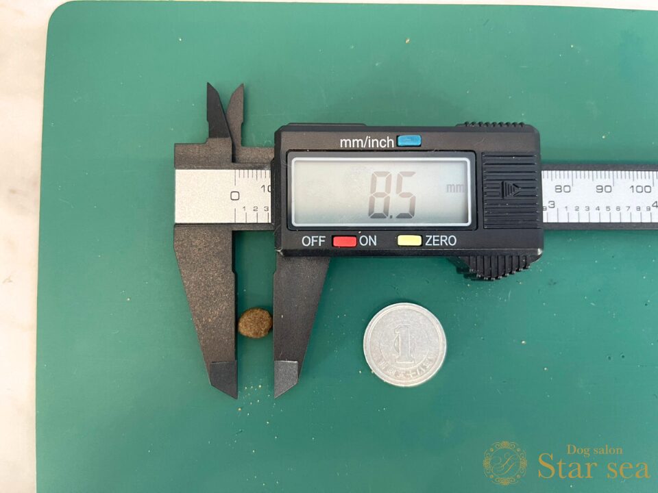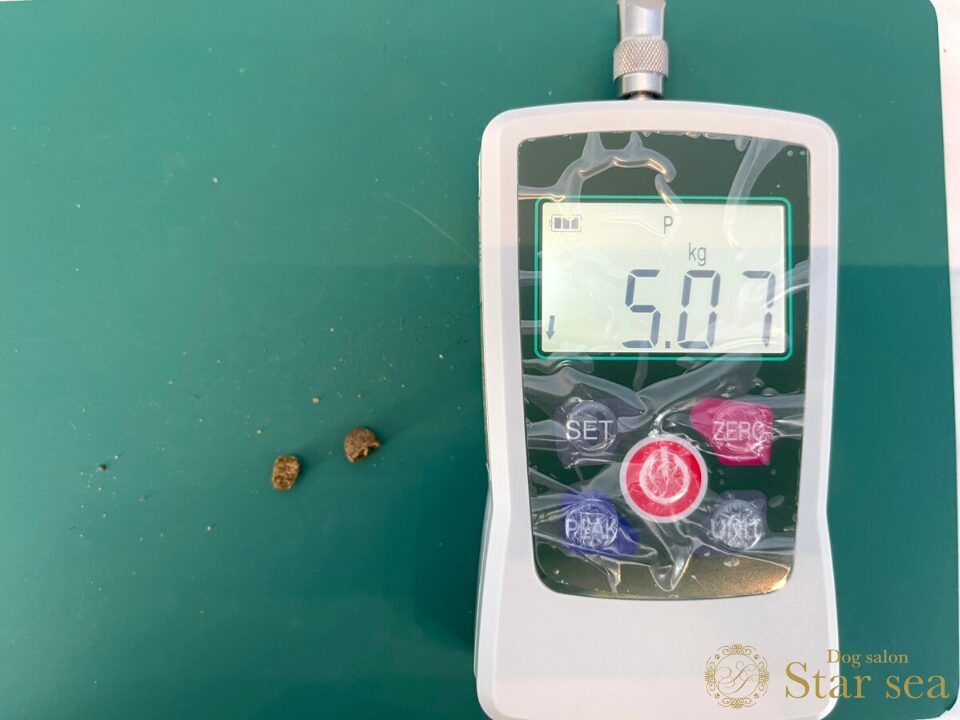 粒の硬さを硬度測定器で測ったところ、5.07㎏と一般的なドッグフードと同程度の硬さでした。