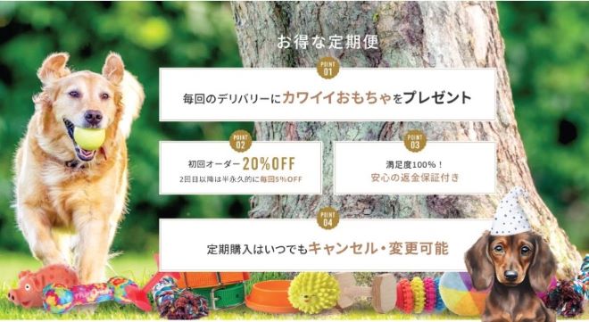 愛犬がよく食べてくれるのはもちろんのこと、定期購入では毎回届くおもちゃを楽しみに待っている飼い主さんがいるようですね。
