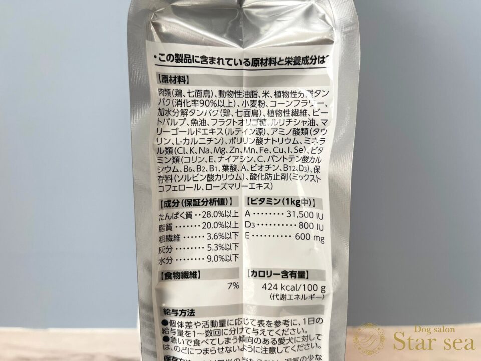 タンパク質と脂質が一般的なフードと比べると高めです。