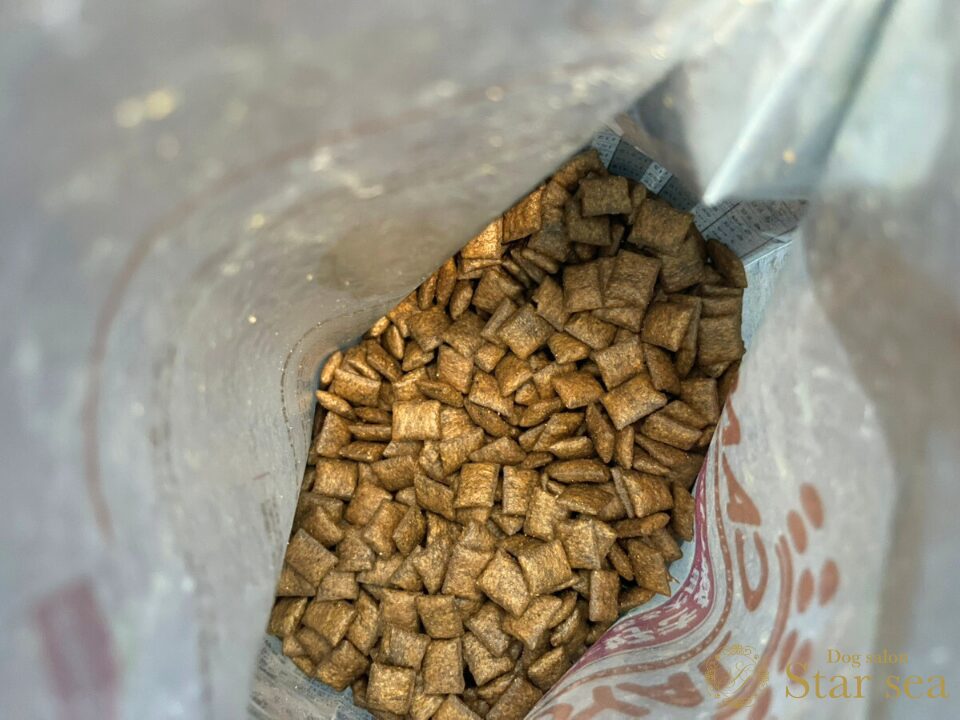 袋を開けると、だしのような香りがふわっと広がり、ドッグフード特有の油の匂いが苦手な子でも食いつきが期待できます。