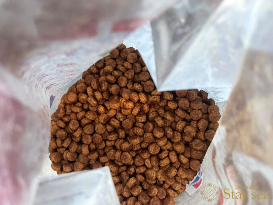 開封する前からフードの香りが漂うほどで、袋を開けるとさらに強い香りがします。
