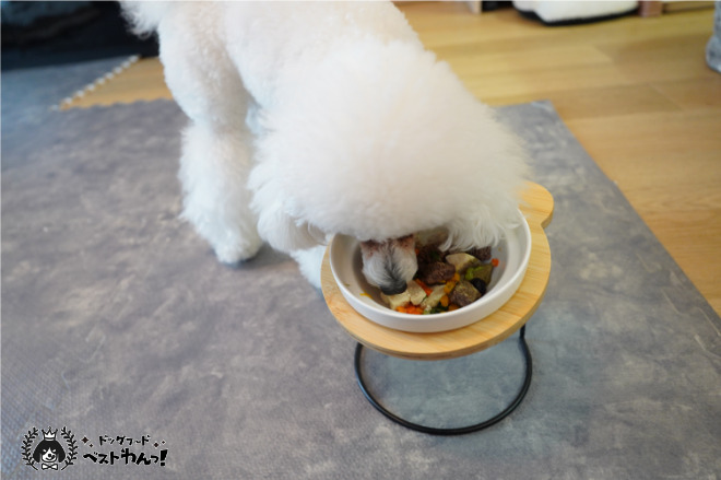 さすが高級フード!と思える抜群の食いつきでした。2歳と14歳のトイプードル2匹とも大喜びであっという間に完食してしまいました。