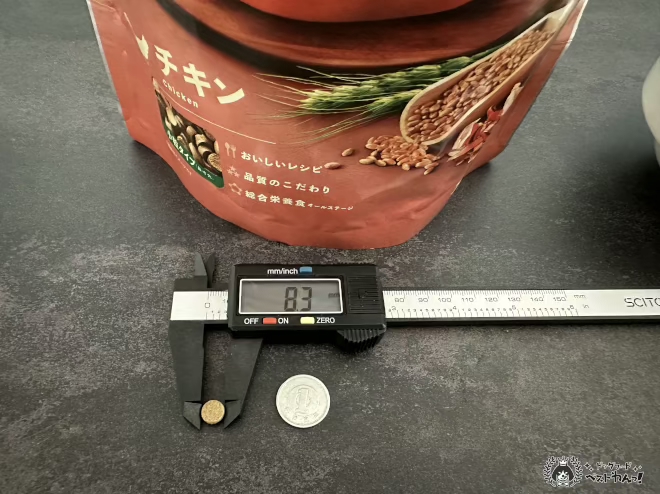 ヤムヤムヤムの粒の大きさを計測したところ8.3ミリでした。