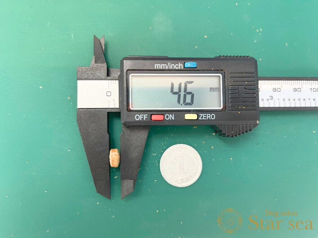 粒の大きさを計測したところ、大きさが8.0㎜、幅が4.6㎜でした。