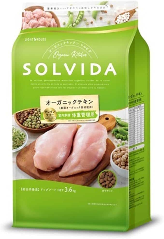 こちらのソルビダのパッケージは、落ち着いたグリーン系のカラーが特徴で、大きく美味しそうなチキンの写真が載っており、どんな素材が使われているのか一目でわかるデザインになっています。