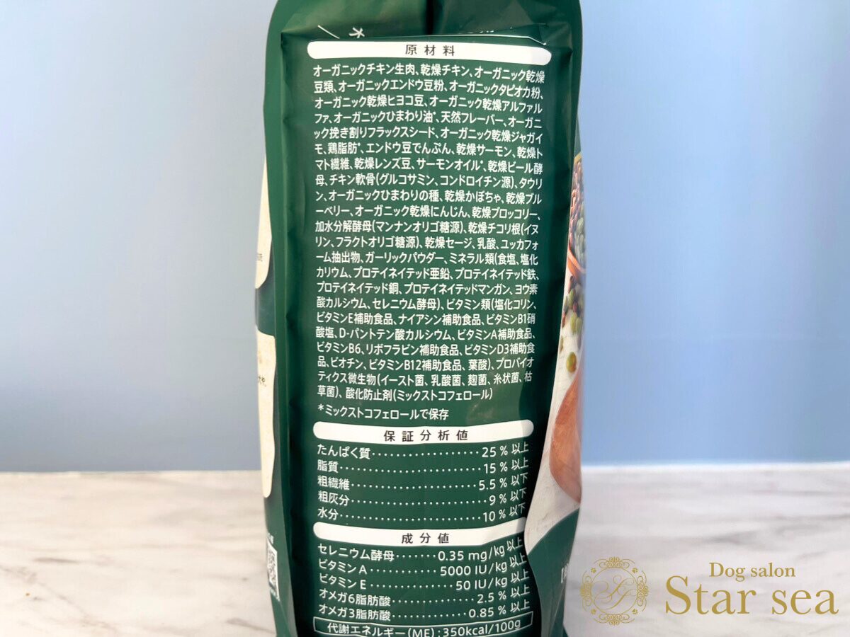 オーガニック食材をふんだんに使用しており、原材料へのこだわりが強く感じられるドッグフードです。
