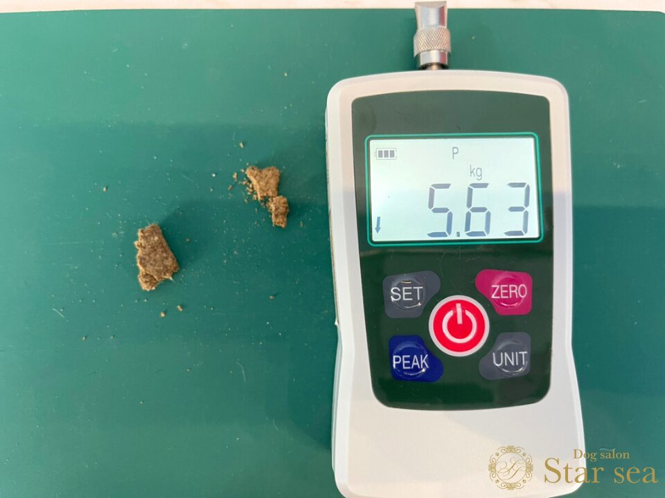 硬さを硬度測定器で計測したところ、5.63㎏でした。
